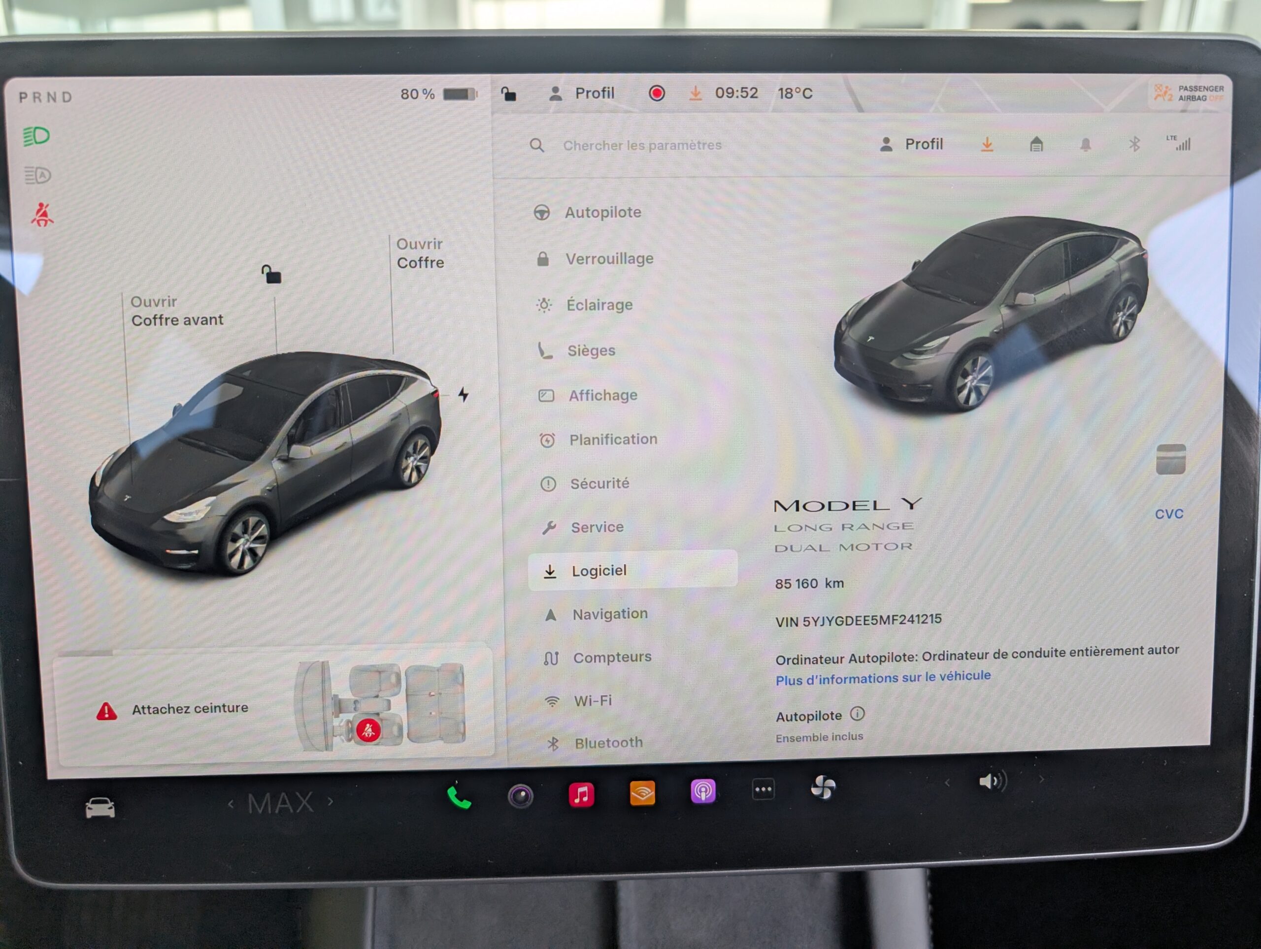 À l’intérieur, le Model Y se distingue par son design épuré dominé par un grand écran central tactile, sa connectivité avancée et ses mises à jour logicielles à distance. Son habitacle spacieux, son coffre généreux et sa traction intégrale en font un véhicule aussi pratique que performant. Sécuritaire, économique à l’usage et incroyablement technologique, le Model Y Long Range est un choix haut de gamme pour rouler électrique sans compromis ⚡